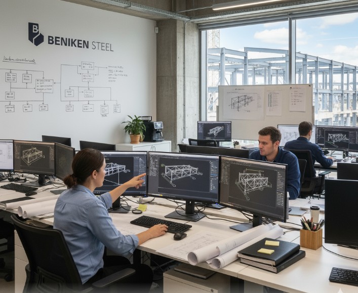 弊社では、鉄骨工事における一般図および原寸図の作成業務を専門的に承っております。設計図書に基づき、製作・施工に必要な図面を高精度かつ効率的に作成し、現場の円滑な進行と品質確保を支援いたします。